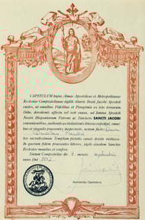 Gegeben in Compostela den (Tag, Monat, Jahr)" (evtl. noch Annus Sanctus - heiliges Jahr)."